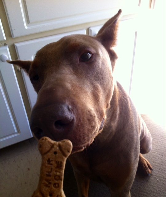 Our dogs are entitled to each one treat, twice a day. One in the morning and then one before bed you know, as a snack! They literally dance for their treats, the big guy turns around in circles and the little guy will hop around on his back feet – very cute and totally deserving every time.